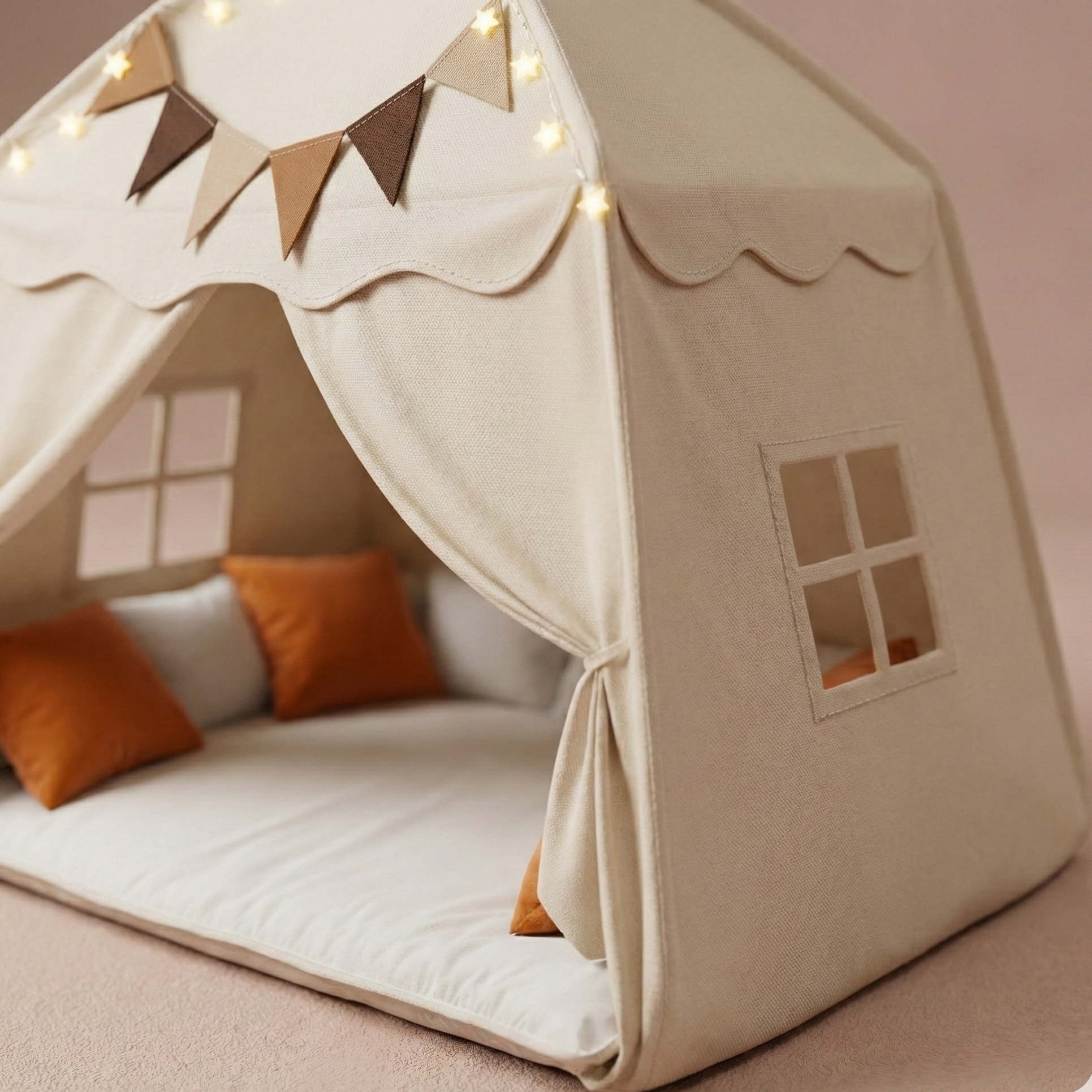 The neutral cream palette and textured premium weave allow this sanctuary to integrate seamlessly into sophisticated home interiors, maintaining your home’s aesthetic integrity.